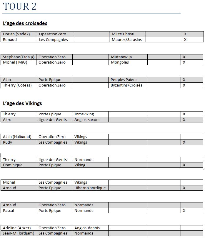Surlignés en gris sont les joueurs qui reçoivent à domicile (avec leur scénarios et décosr préparés)