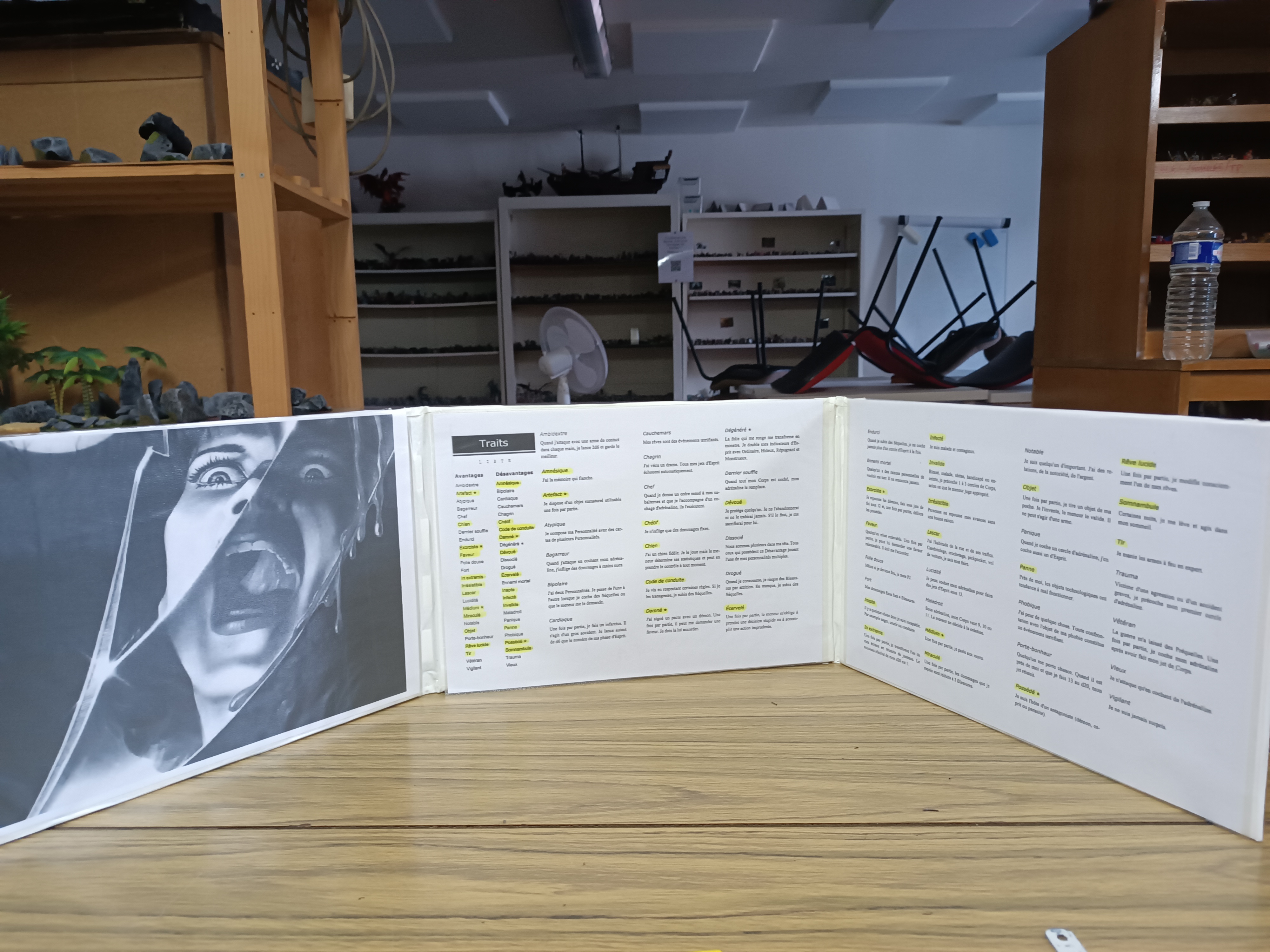 Étape absente de mes photos : je placerais ensuite du scotch double face sur mes plaques et collerais des feuilles transparentes ! Pensez bien à découper la partie des feuilles transparentes ou il y a les oeillets (bah oui sinon c'est vachement moche) et voilà que vous pouvez décorer votre paravent et mettre les recaps de votre jeu préféré du côté MJ !