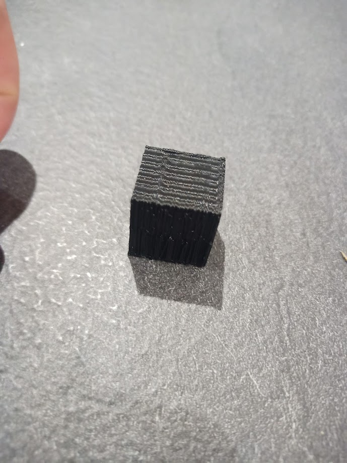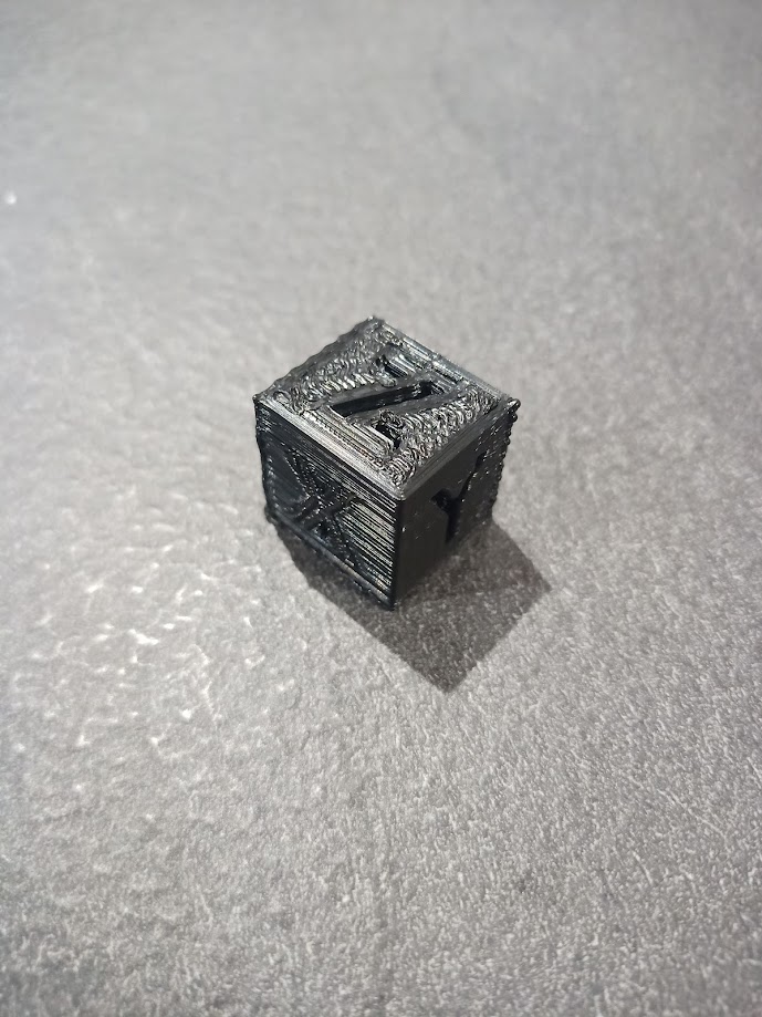 J'ai imprimé le dé et, bonne nouvelle déjà l'imprimante est allée jusqu'au bout sans tout casser, et mauvaise nouvelle je confirme qu'elle n'est pas calibrée correctement.