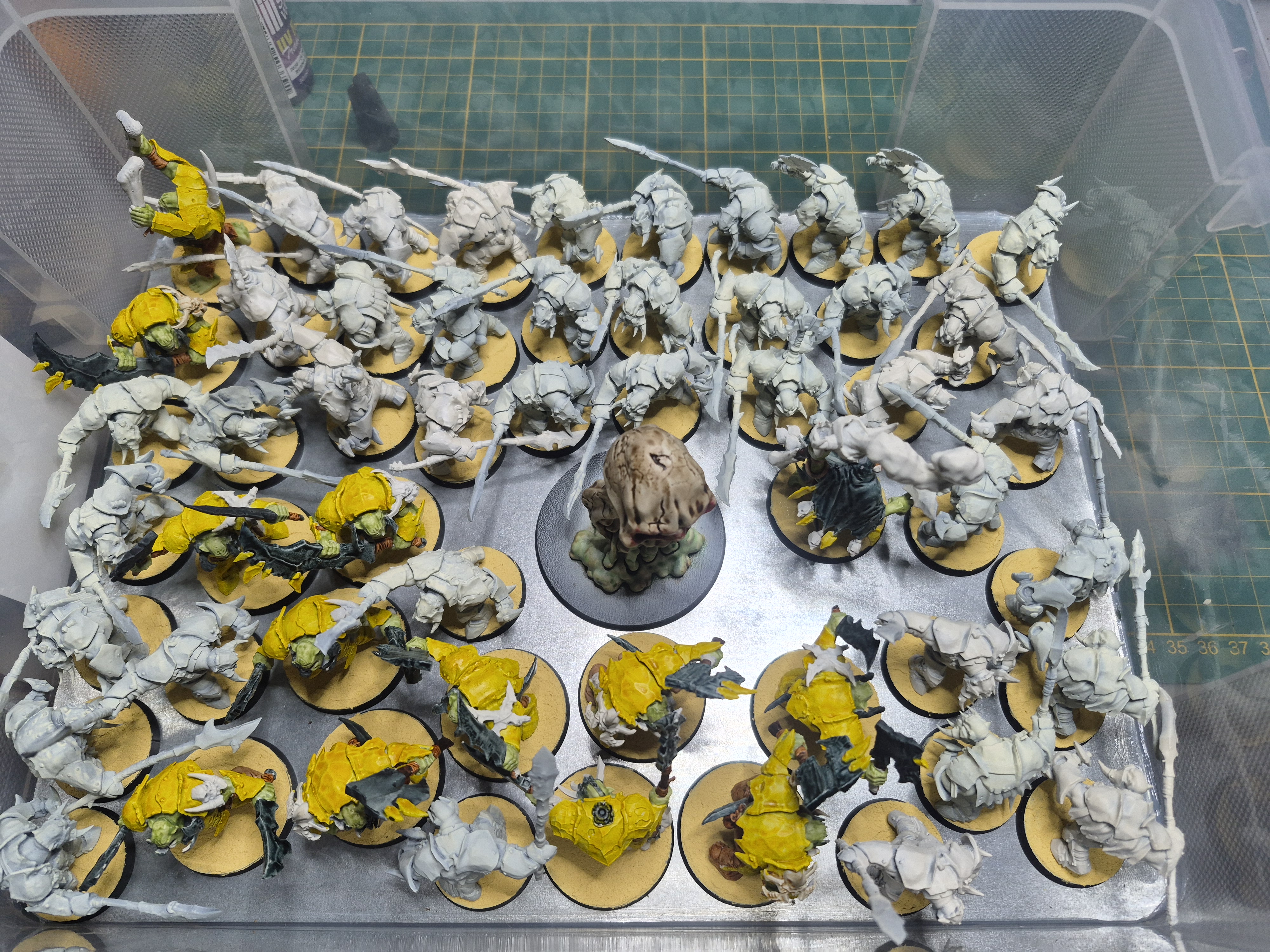 Toute les figurines sauf le megaboss sont sur socles avec une sous souches ou debut de peinture.